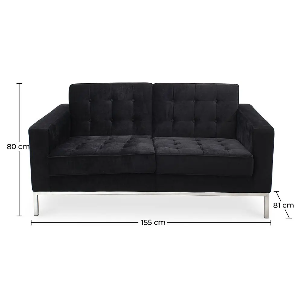 Designed in 1954, this Kanel Sofa (2 seats) is a designer sofa par excellence, drawing on some traits of 18th century English furniture, while remaining resolutely modern with its taut and minimalist lines. It is made of stainless steel legs under a wooden frame. It is entirely covered in fabric, offering total comfort.