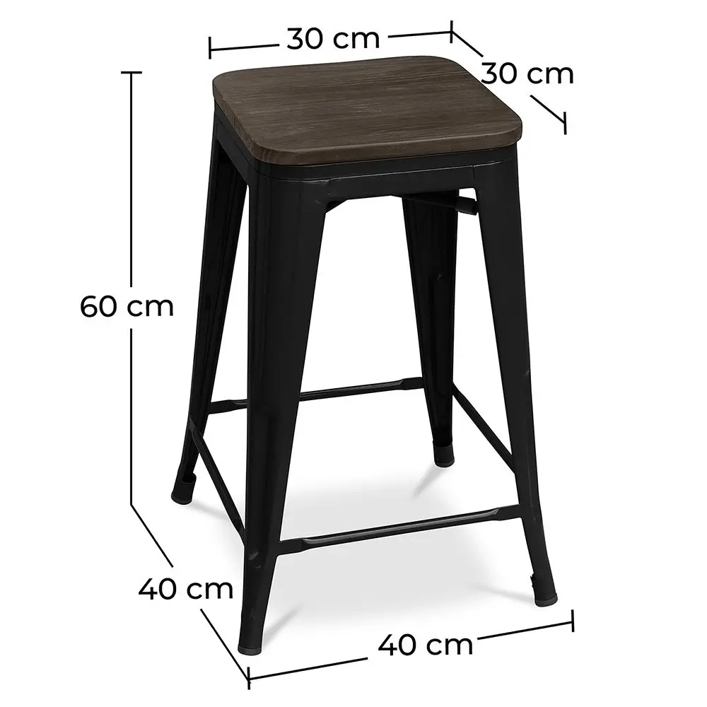 Add character and functionality to your kitchen or bar with the Metalix 60 cm stool featuring a dark wood seat. Its backless industrial design offers a clean, practical solution that blends seamlessly into stylish interior settings.