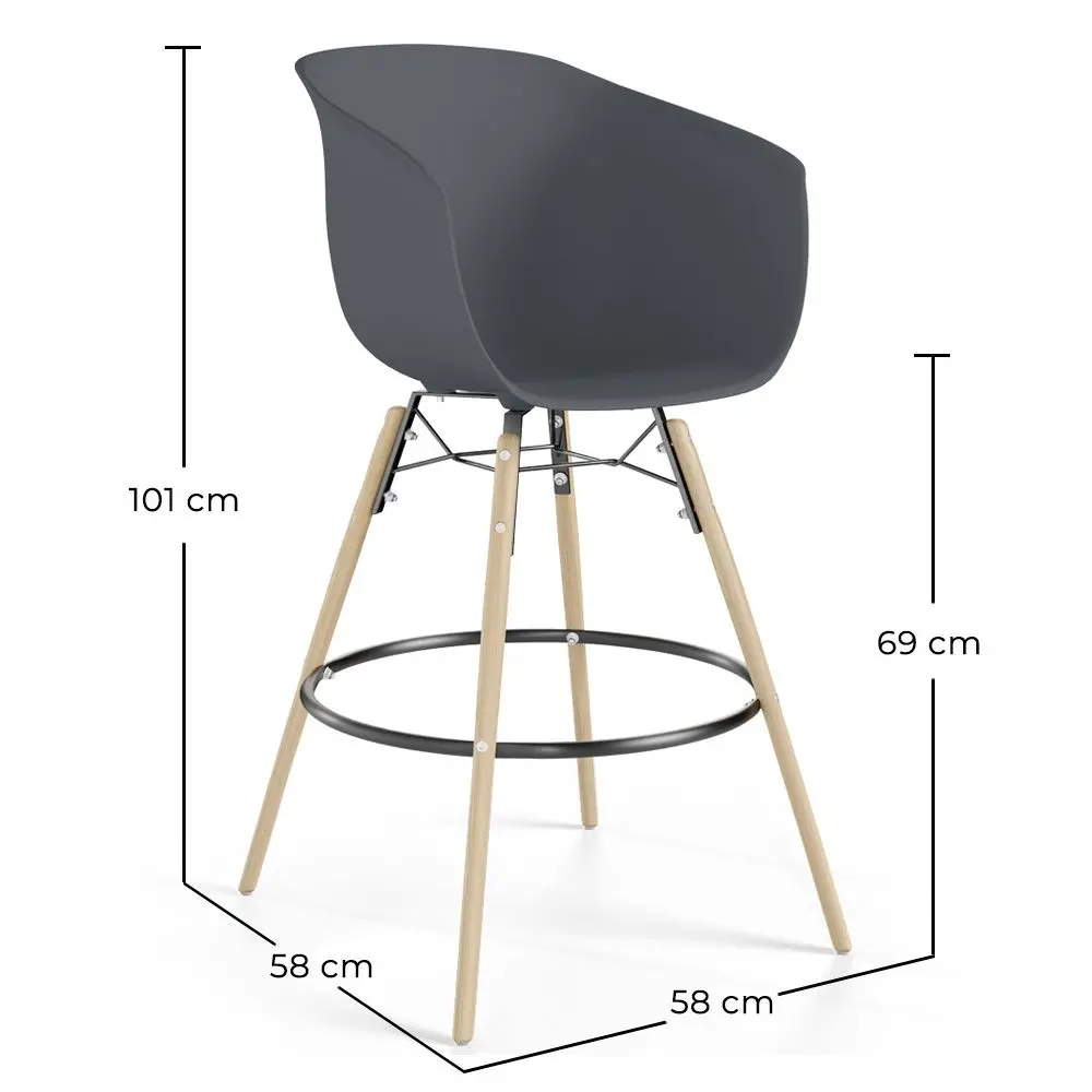With a distinctly Scandinavian style, our Miscel bar stool is comfortable and very stable. The seat is made of polypropylene, and the legs are made of solid beech wood with a network of black metal rods that provide additional stability. This high-design bar stool is ideal for the counter of a bar, hotel, restaurant, or café, as its great quality allows it to remain like new over time.