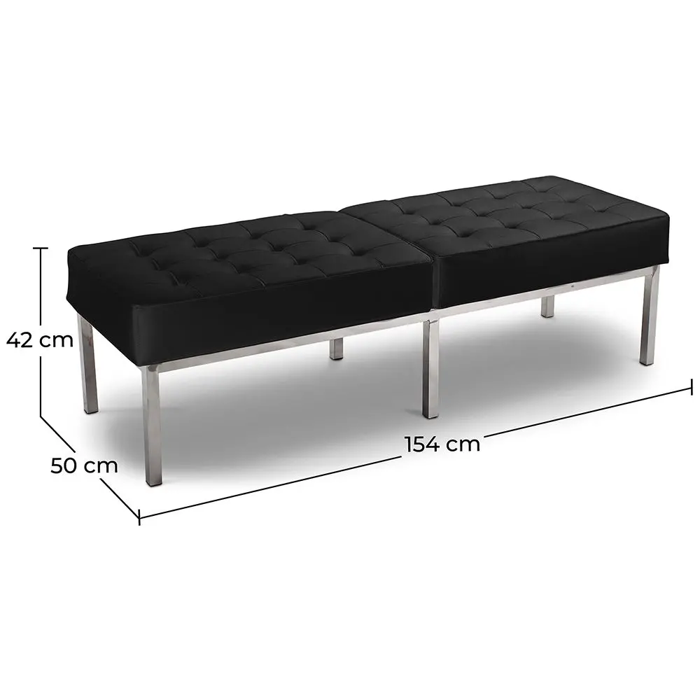 It is available in a range of colours. The seat is poised on a steel leg which perfectly matches the colour of its faux leather upholstery and lends it modernity and elegance. This 3-seater bench is both wide and comfortable and you will feel very relaxed in it.