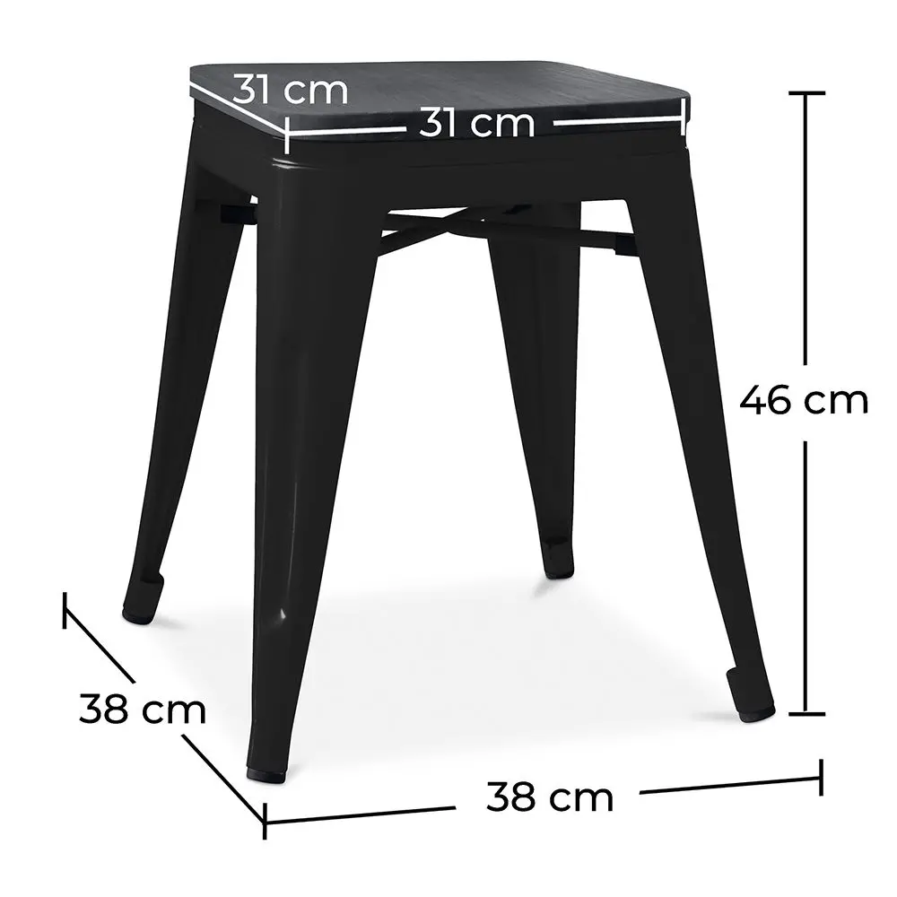 This Iron and dark wood tolix style stool is a piece of furniture that is not only totally functional but is modern and stylish and fits into any decor. It is quality made with the best of iron and the highest grade dark wood. The iron and dark wood tolix design stool works beautifully as a counter stool and compliments the bar. It is a beautiful addition to restaurant seating. The Iron and Dark wood Bar stool wipes clean easily and provides safe and sturdy seating for all age groups. It is the type of stool where several together addresses all the seating needs.