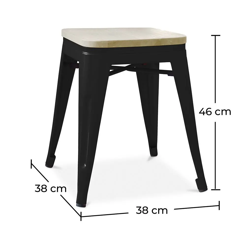 Go back to the basics with this design stool from the great line of Bistrot Metalix Style Stools. It made with iron legs and a light-colored wooden top, which gives it a shiny appearance. The Stool has an X-shaped iron reinforcement just below the seat top for added strength.