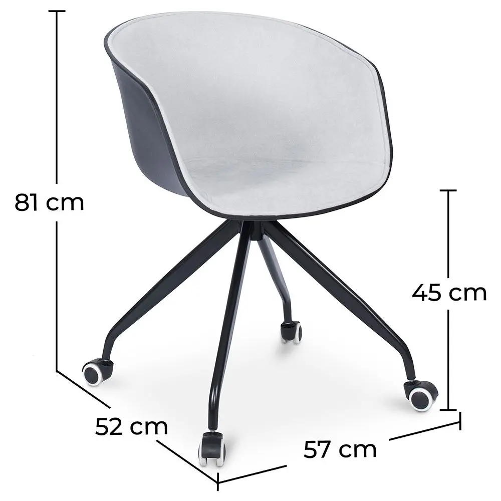 Enjoy moving around comfortably in this office chair with wheels. The sizeable rounded back is perfect for office users of all kinds. Designers, engineers, and tech-based employees often look at various plans and devices. They will appreciate the ease of movement that this office chair provides. The fabric cushion and powder coated legs make for easy cleaning. The chair's design stands out in a home or commercial office. The chair measurements include a depth of 52cm, a width of 57.5cm, a height of 81cm, and a seat height of 45cm. It's available in several colours.