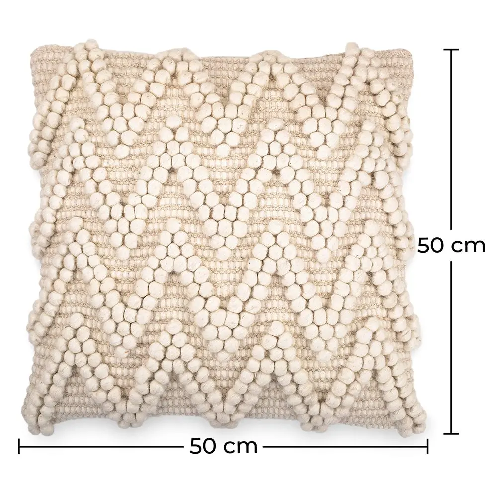 This cushion Chewuna cover comes with a cushion and gives the sofa, armchair or bed a touch of wool. The simple design of this squared shaped cushion highlights the cosiness and warmth of its material. We can imagine this wool piece in the living room or bedroom. A great addition to your couch, sofa, armchair or bed. Filling included.