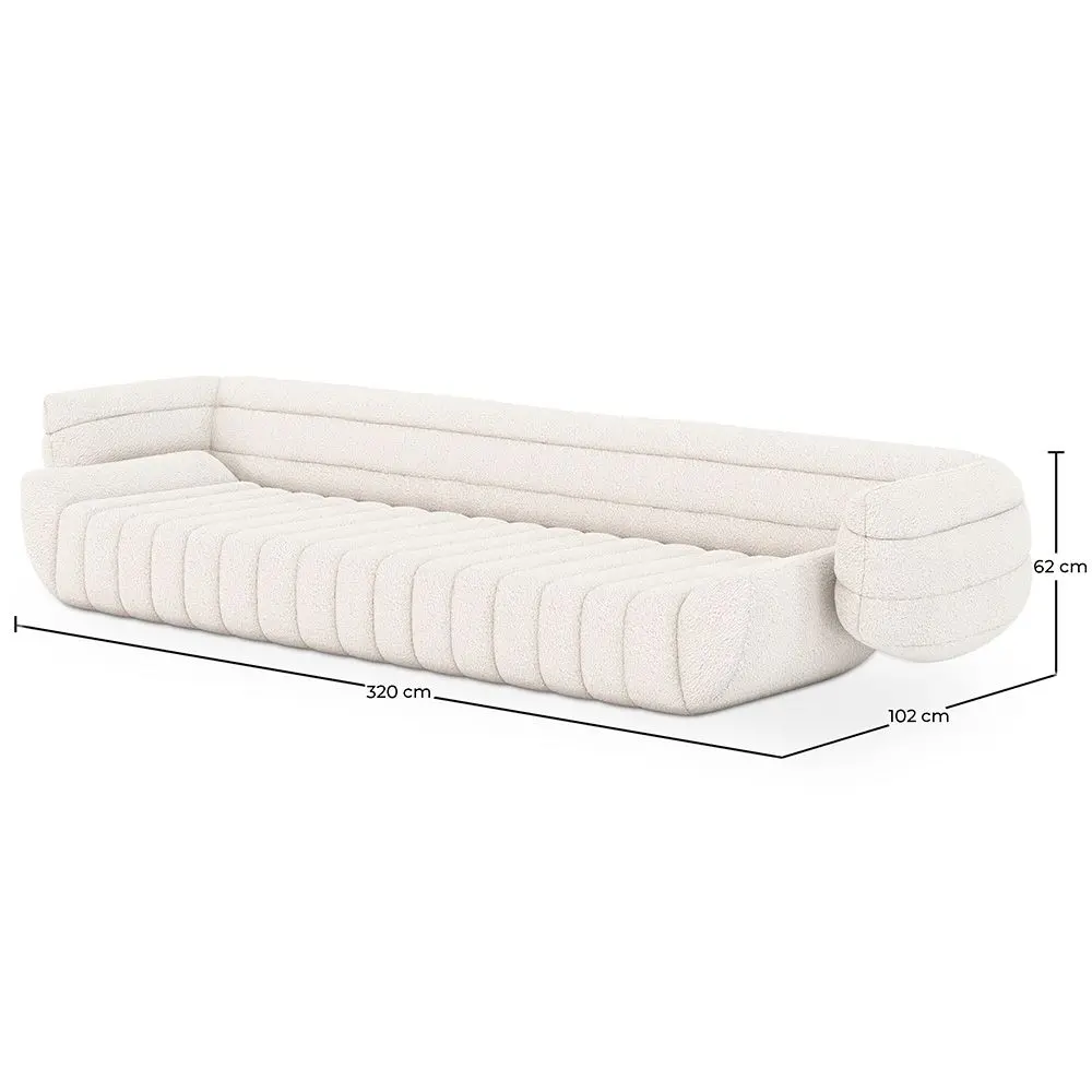 The Lumun sofa upholstered in boucle fabric is a luxury piece that offers you the comfort and style you need for your home. Its extra-long seat and comfort make it a must-have for modern living rooms. The attractive design with imitation sheepskin fabric upholstery, combined with its simple lines, makes this 4/5 seater sofa perfect for your home. Also ideal for any business center, hotel or waiting room, this sofa will make your space look elegant, modern and cozy. With its premium quality, the Lumun sofa collection is the ideal choice for those who seek for refined style without sacrificing comfort.