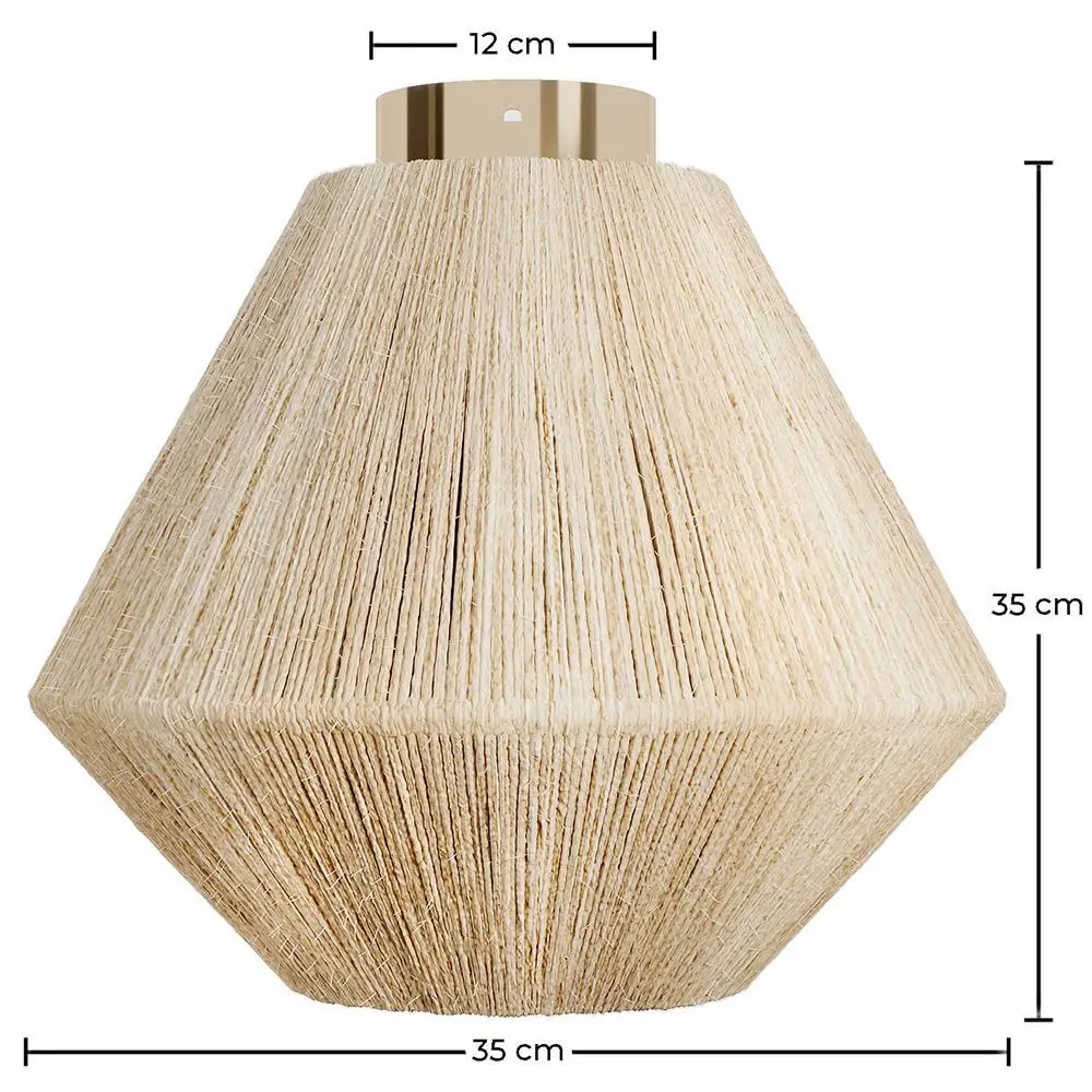 The Naribu ceiling lamp is a handmade masterpiece that combines the beauty of nature with a vintage and bohemian touch. This beautiful lamp is designed to be the focal point of any space, adding charm and elegance. The natural fiber used in creating the lampshade creates a warm and soft illumination, perfect for creating a cozy and relaxing ambiance. The circular base of our ceiling light is crafted in aged metal, giving it a vintage feel and an air of antiquity, adding character and authenticity to the piece. This ceiling lamp is ideal for both homes and public spaces, hotels, charming restaurants, and cafés...