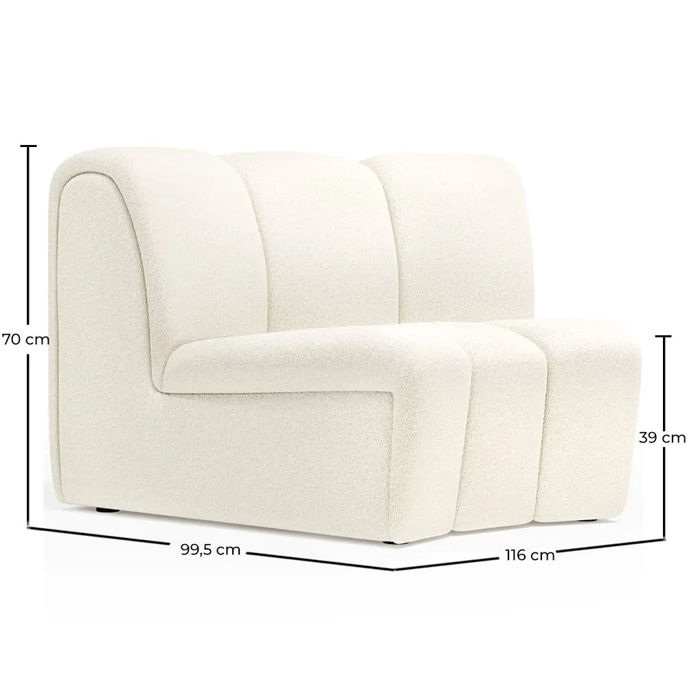 Introducing our sofa module with a curved design that redefines the concept of comfort and modernity. Upholstered in premium bouclé fabric, this module is not only visually striking with its elegant shape but also provides a luxurious seating experience. Perfect for hotels and restaurants that value quality and design, this module can seamlessly combine with our straight module, allowing you to create a customized sofa that suits your style and space. Every detail of this module has been carefully designed to offer a perfect blend of contemporary style and unparalleled comfort.