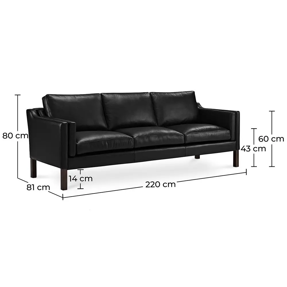 The iconic 2213 Sofa (3 Seats) created in 1962 is one of the most sought-after piece of furniture in the contemporary design history. Its simple, clean lines and geometrical forms follow Danish design principles of functionality. The sofa’s solid structure has an elegant outline, making it an attractive centrepiece for any business or home setting. The sophisticated look of the 2213 Design Sofa (3 seats) combines a spacious seating area that can accommodate up to three people and maximum comfort for relaxation. The sofa is available in carefully selected imitation, classic or premium leather. Its classic lines make it a timeless piece that will suit any style of decor, leaving you free to simply sit back and relax.