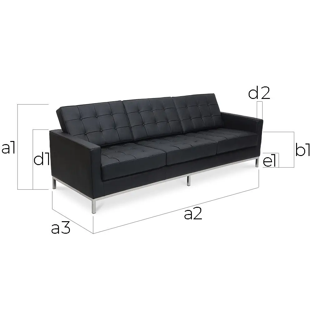 Designed in 1954, this Kanel Sofa (3 seats) is a designer sofa par excellence, drawing on some traits of 18th century English furniture, while remaining resolutely modern with its taut and minimalist lines. It is made of stainless steel legs under a wooden frame. It is entirely covered in leather, offering total comfort.