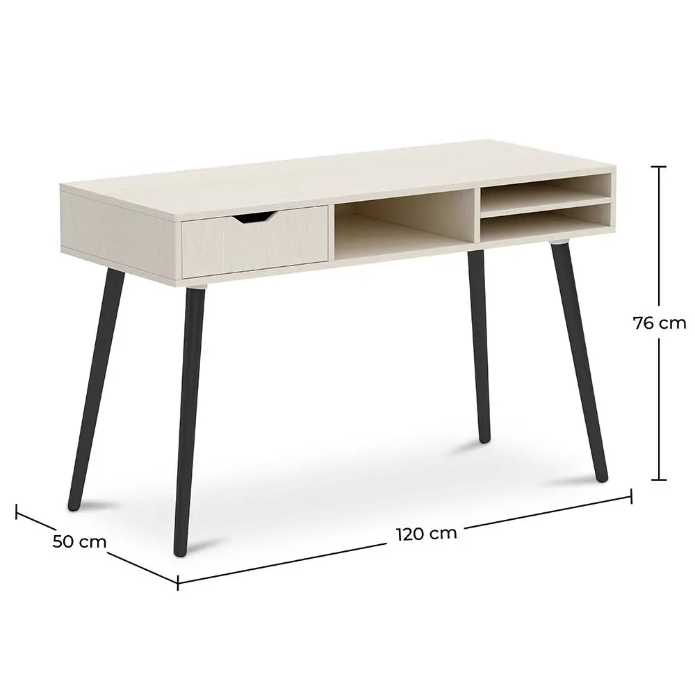 As remote working actually becomes an increasingly popular option, setting up a home office with a wooden desk table is a great idea. This Scandinavian desk has an attractive MDF top and sturdy wooden legs. The ergonomic design offers a small drawer and open shelving, making it ideal for a children's room. As a computer table, it would be a great addition to a home office or would not look out of place in any other room. The Scandinavian styling is pleasing to the eye, and the included storage space makes it a valuable piece of furniture.