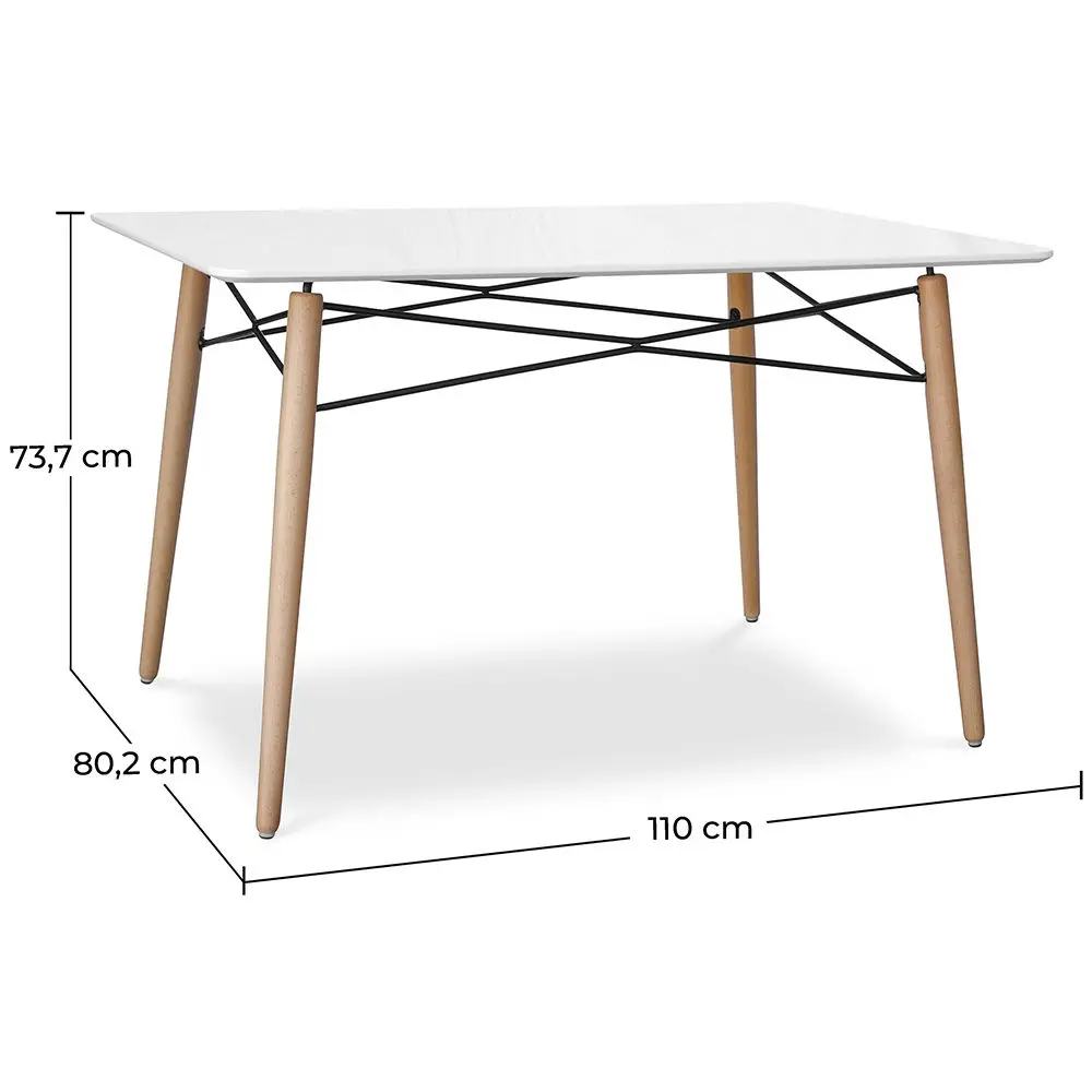 If you are looking for a rectangular dining table that matches any style of chairs, the Deswood table is perfect for you. This dining table is formed by a rectangular wooden board and beech wood legs joined by a network of black steel rods.