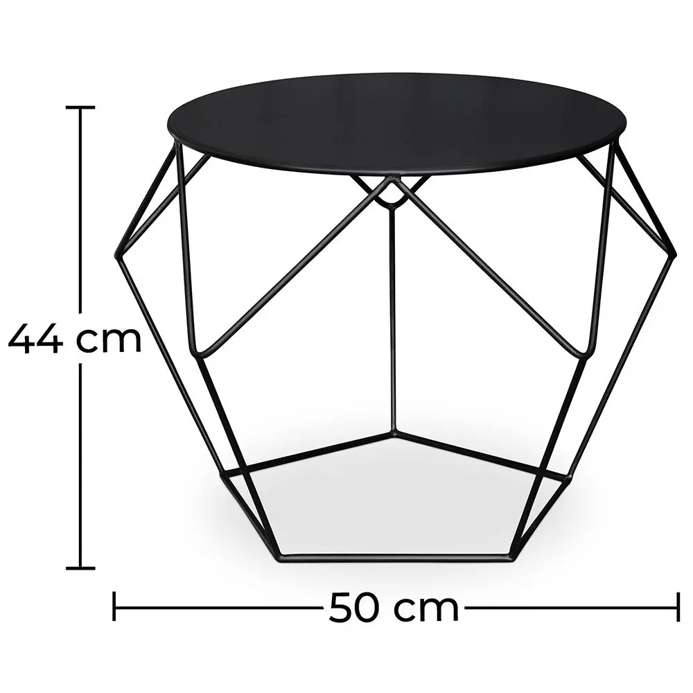 This side table made entirely of metal is 44 centimeters height. It is formed with high resistant steel rods and a round surface of 50 cm diameter.