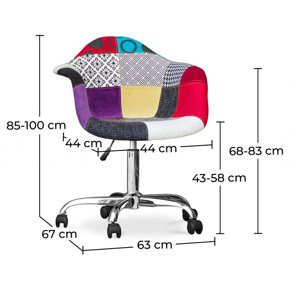 Are you in the market for a new desk chair? And is one of your requirements for it that it must be modern looking? Then this one might be the right fit. It has a beautiful and very modern looking seat, with material that is upholstered in a fresh-looking patchwork. It features all sorts of vibrant colors. It's definitely a relaxing chair to sit in as well, with its handy armrests. If you want to use it all around your house, you can easily do that, as the steel legs have wheels on them. A swivel seat and adjustable height is extra bonuses.