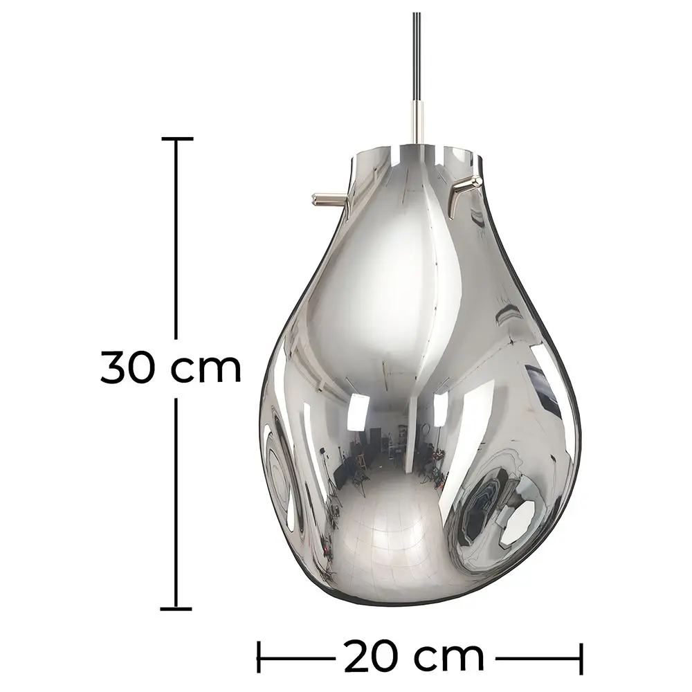 This glass pendant light has a teardrop shaped shade in opaque glass. Sophisticated, even when the lights are off. Shade shape refracts the light and adds a playfull element to this hanging lamp ready to bring light to your living room, hallway.