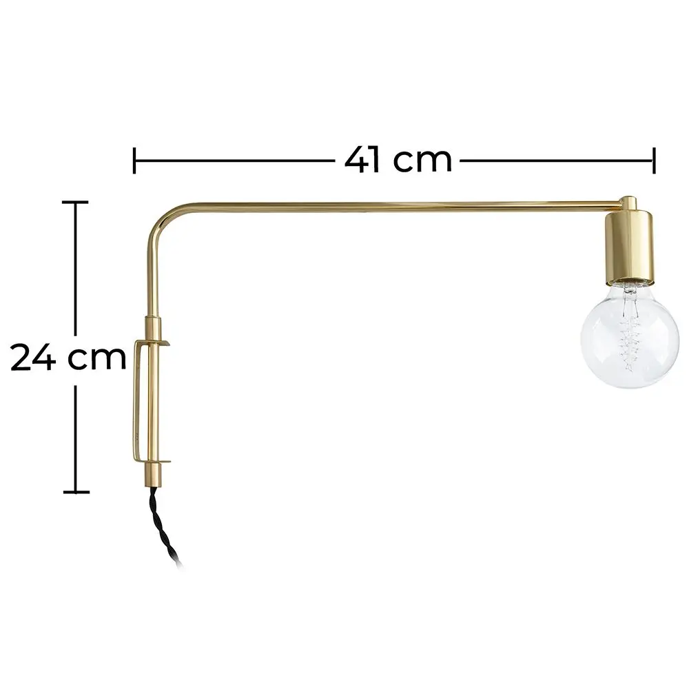 This beautiful wall lamp has a minimalist design that together with its golden colour will give your interior decoration a refined and high quality felling. This wall lamp consists of a rotating arm that allows you to focus the light where you want it.