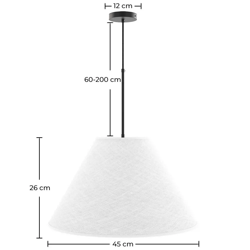 Transform any space with our hanging ceiling lamp, a designer piece that combines elegance and functionality. Made with a durable metal structure and a circular fabric shade, this lamp provides warm and cozy lighting, perfect for creating intimate atmospheres in restaurants and hotels. Its adjustable height allows it to easily adapt to any setting, making this lamp an ideal choice for placing over dining tables. Add a touch of sophistication and warmth to your decor with this hanging lamp, designed to stand out in any space.