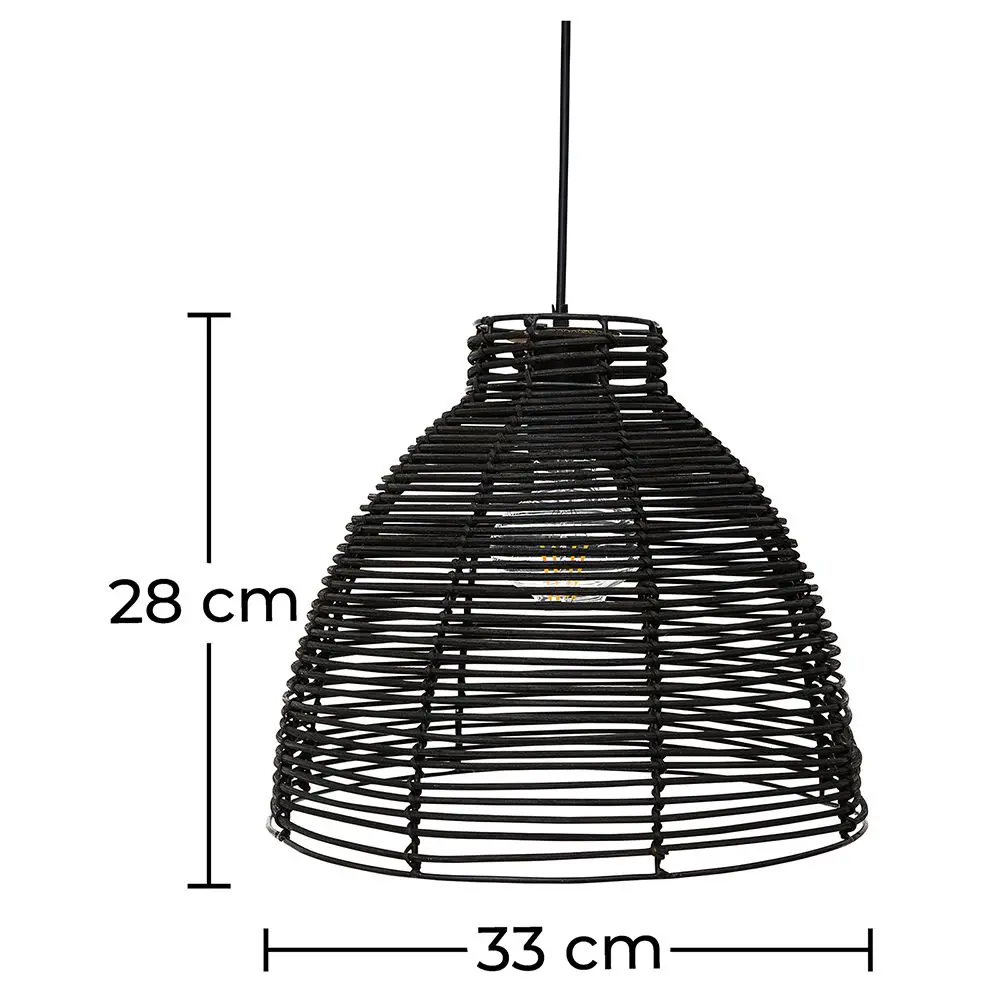 Crafted from a rattan and painted in black, our lamp shade brings the outdoors in, or to your patio. Black color gives a classy and dim look of this natural material hand-made handing lamp. Simple pattern of weaves will reflect around the room. Enjoy its light.