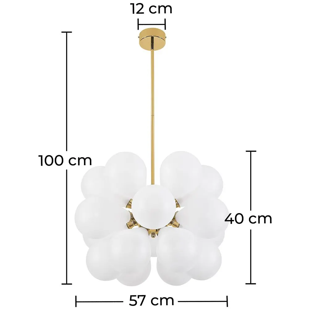 If you are looking for a ceiling lamp that makes the difference, this beautiful lamp with 18 LED bulbs is ideal for you. Made of metal and glass globe lampshades, this hanging lamp stands out for its luxurious and sophisticated appearance.