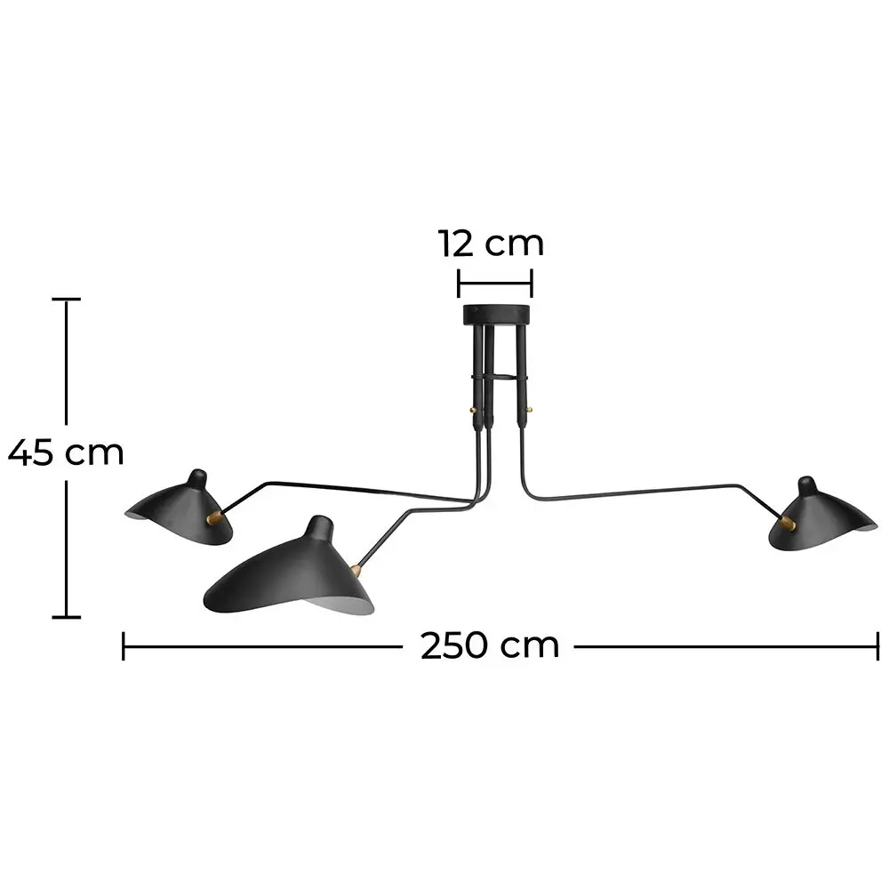 The amazing MNB-R1 ceiling lamp has three arms ending in 3 rotating lampshades. The light emitted by this lamp provides a warm and welcoming atmosphere. Thanks to its large size, it is ideal for illuminating large rooms and open spaces.