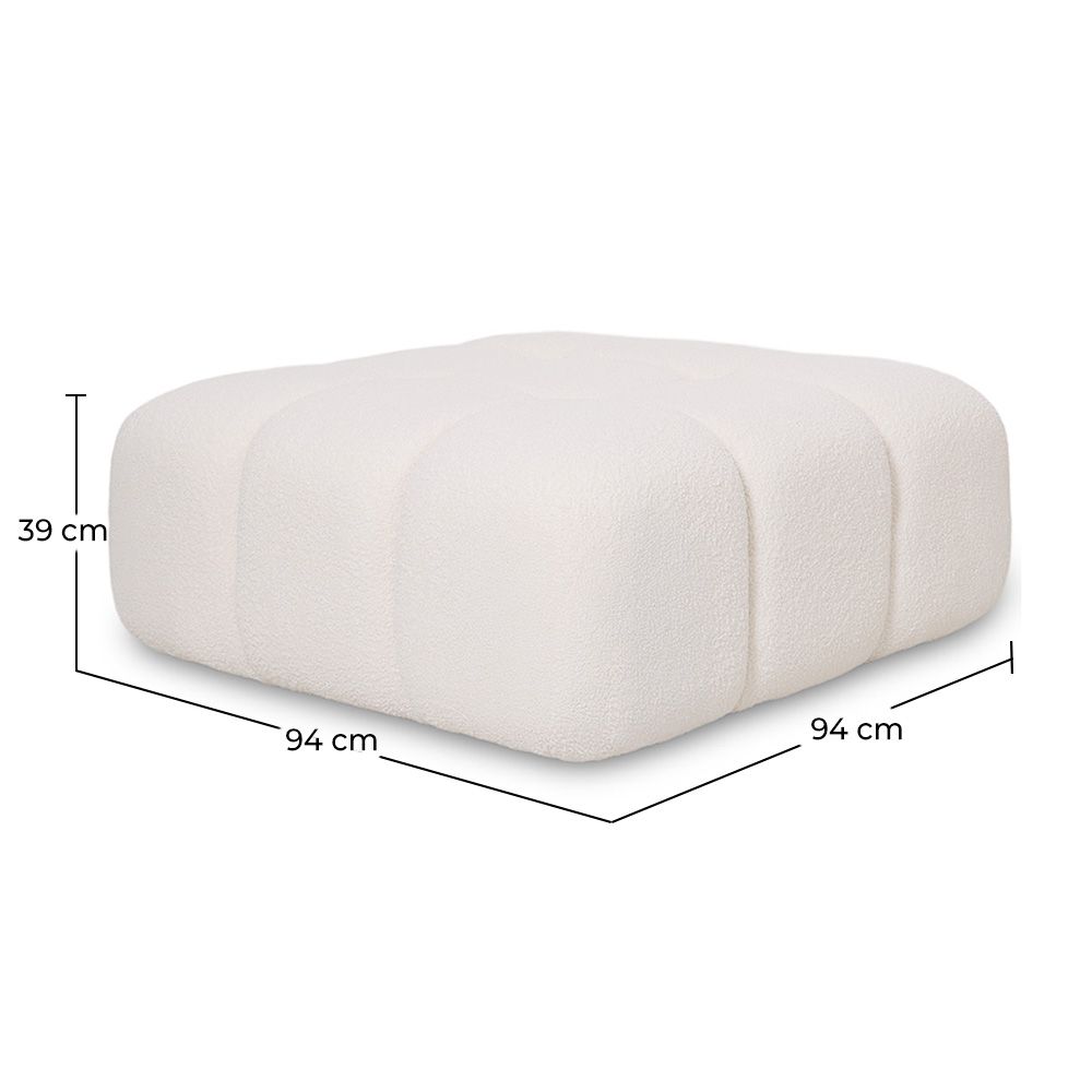 This pouf upholstered in cream white bouclé fabric is the versatile piece your living room needs. Designed as part of a modular sofa collection, it allows you to create multiple combinations to fit any space and style. Its soft and cozy texture adds an elegant and modern touch, ideal for minimalist, Nordic, or contemporary living rooms.