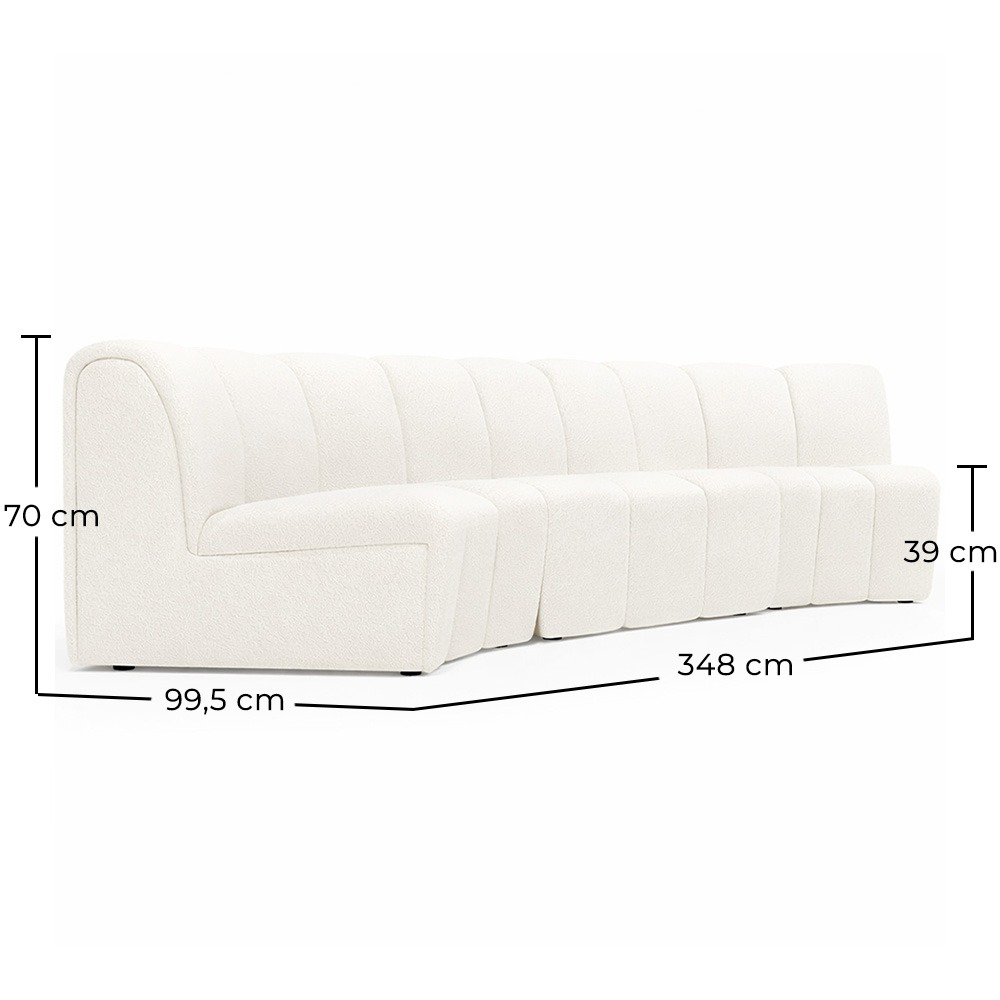Create an atmosphere of contemporary elegance in your hotel with our curved design modular sofa. Upholstered in premium white bouclé and featuring a solid structure of hardwood, this sofa offers a perfect balance between luxury and minimalism. Its clean lines and gentle curves make it the focal point of any modern space, while its modular versatility allows it to adapt to different configurations. Ideal for reception areas, waiting rooms, or luxury suites, this sofa is a statement piece that will impress even your most discerning guests.
