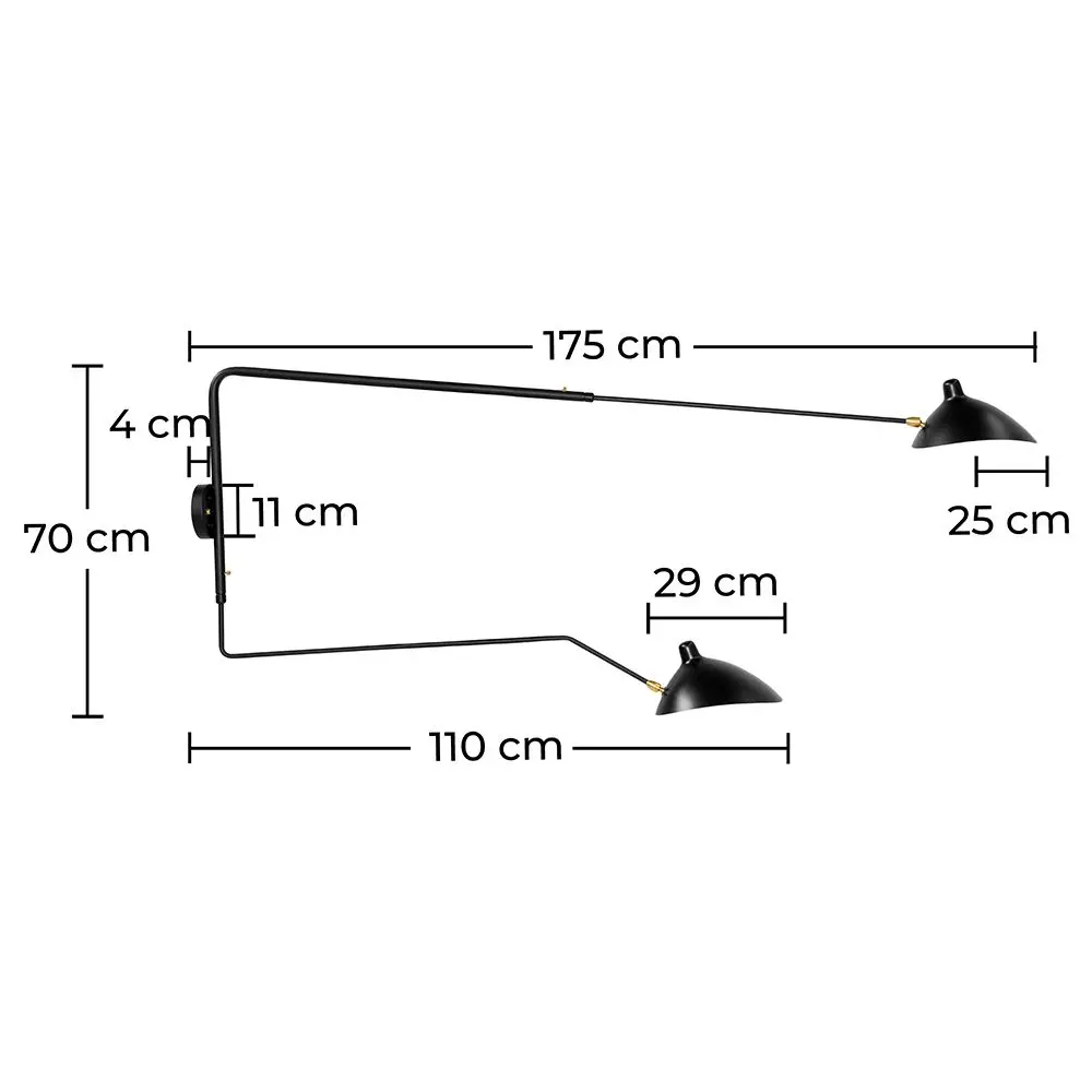 The MRZ-R2C wall lamp is formed of two arms with two rotating lampshades that allows you to control the spread of the light to the desired point.