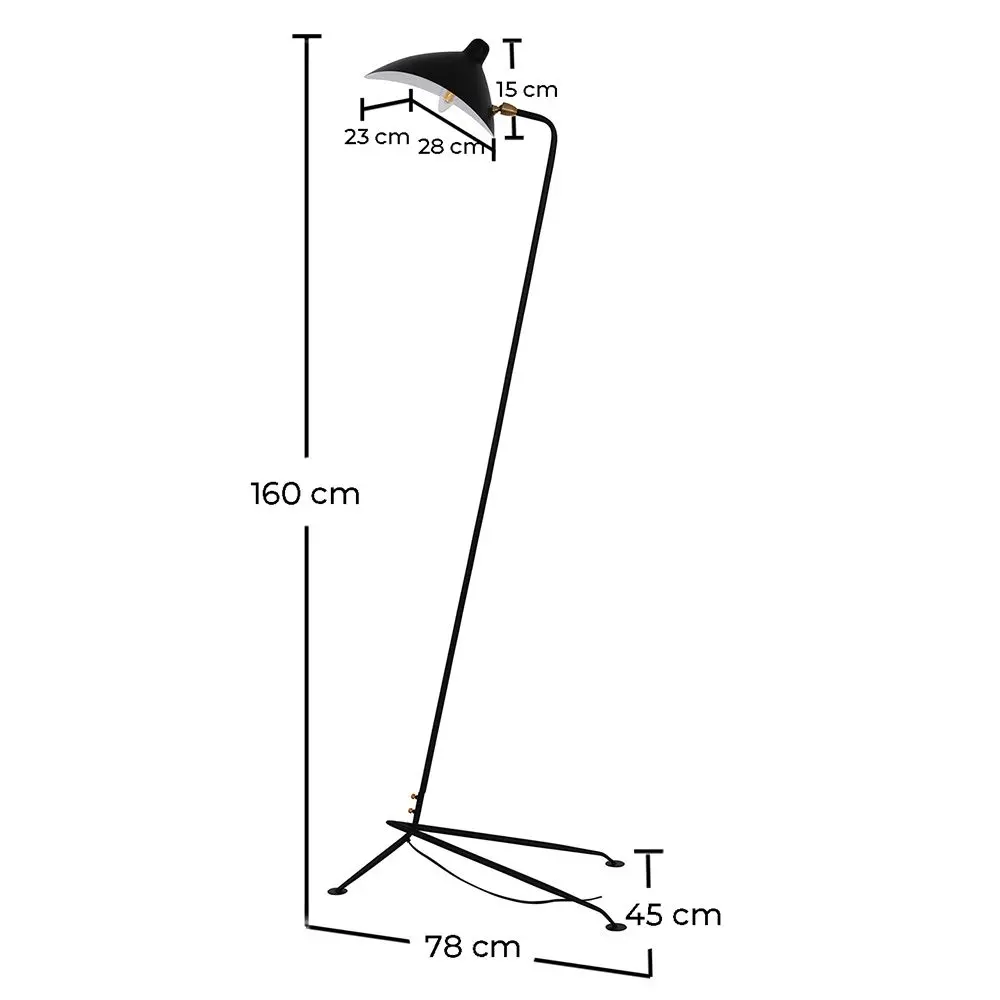It has a swivel lampshade that allows you to illuminate the desired location. Its base is formed by three legs forming a stable and sturdy tripod.