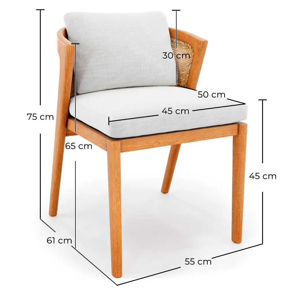 Add a touch of elegance to your outdoor dining area with this teak wood chair, designed to withstand the most demanding weather conditions. The sturdy teak structure ensures stability and durability, while the removable polyester cushions provide comfort and practicality. The cushions are easy to remove and wash, keeping your chair always in perfect condition. Perfect for outdoor dining in gardens, terraces, or balconies, this dining chair combines the natural beauty of wood with modern functionality, creating a cozy and stylish atmosphere.