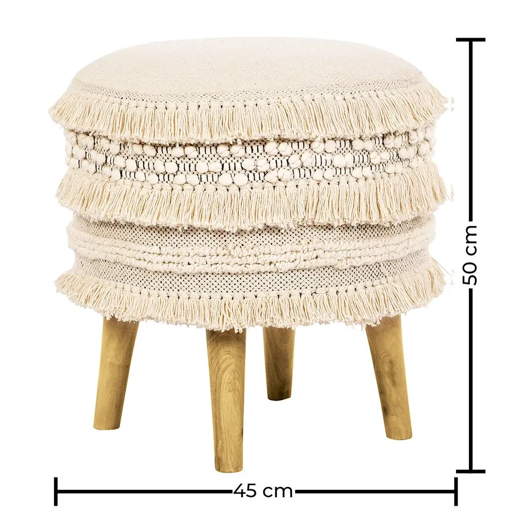 • Buy Pouffe Stool in Boho Bali Style, Wood and Cotton - Janice Bali White 60264 at MyFaktory