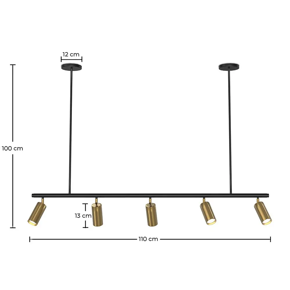 This modern industrial style pendant lamp is 110 centimeters long and the adjustable spotlights allow you to adjust the position of the light to create the perfect ambiance in the room.
