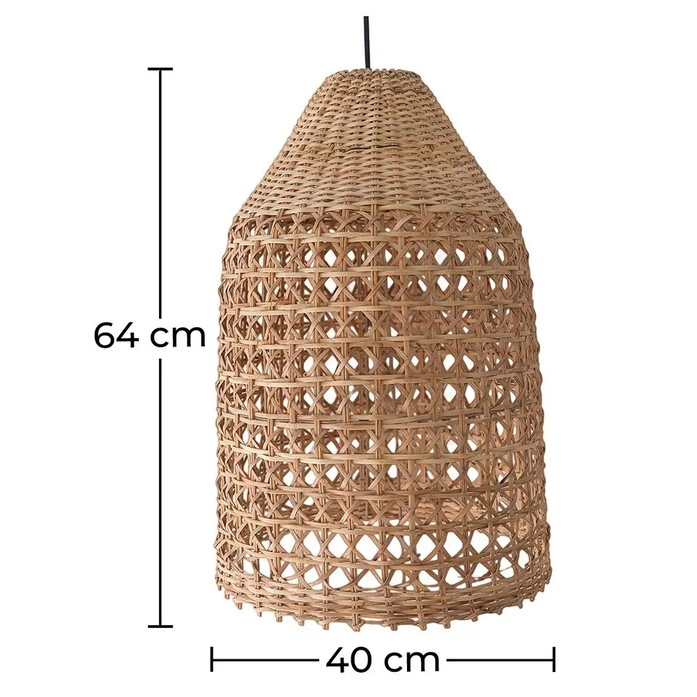 This bell-shaped rattan pendant lamp is an on-trend piece that offers a more focused light source and soft light coming through the woven rattan shade. This boho style piece takes little space and looks perfect in a dining room, kitchen, office, indoors and outside. It brings style while providing light.