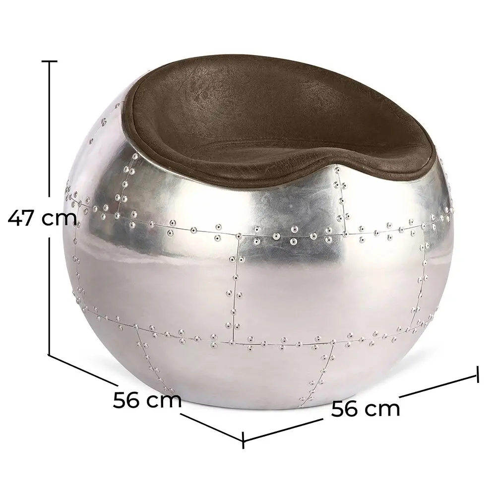 It will easily fit in and impose its strong personality upon your living room or office. Its shape and its aluminium exterior will remind you of an airplane pilot's seat and its aluminium leg makes for pleasant seating. Its egg shape will envelop you offering an unrivalled comfort.