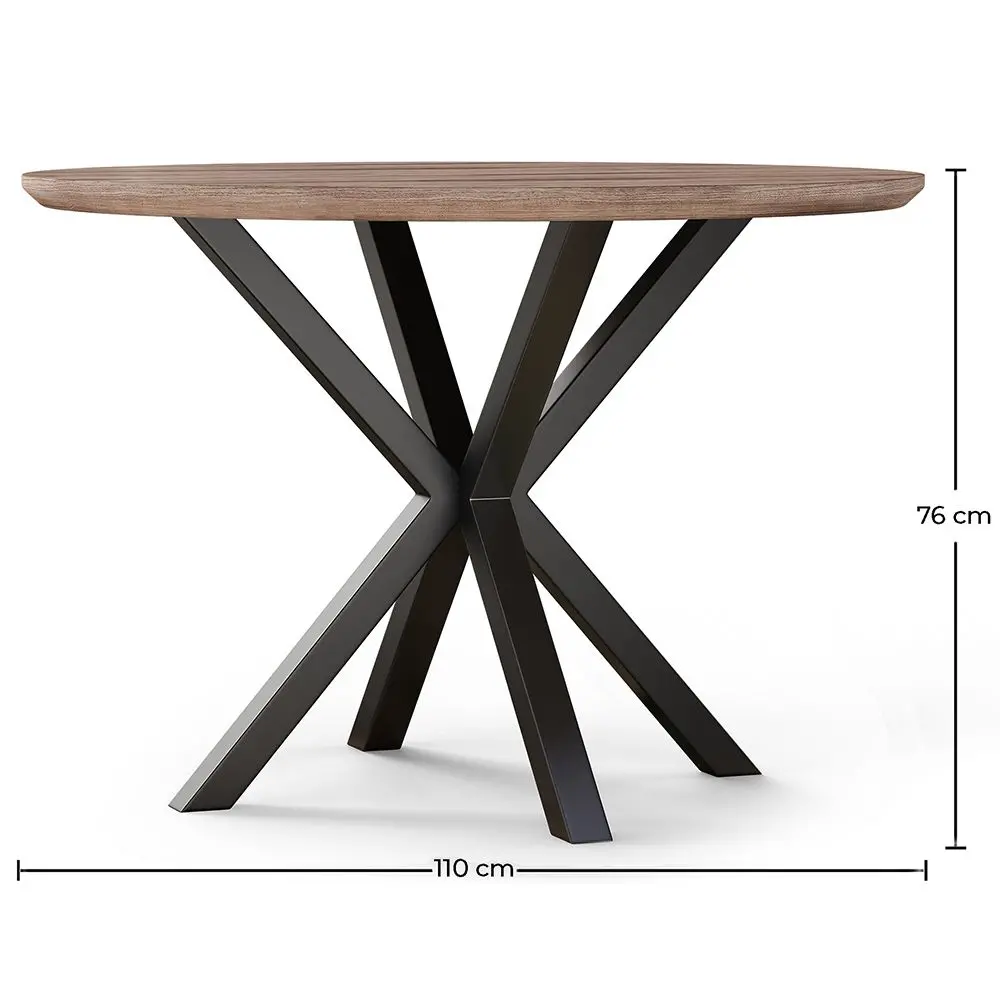 This industrial-style round dining table is a unique and robust piece, perfect for restaurants and hotels looking for modern decoration. The wooden base and metal legs give the table a retro look, while the superior quality ensures that it will stay in pristine condition for many years to come. Our round table has a diameter of 110cm, which allows it to accommodate between 6 and 7 diners.
