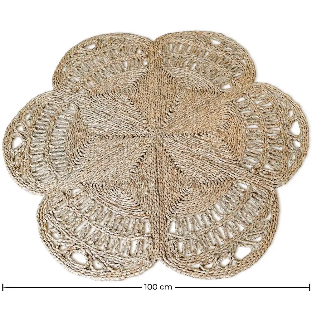 Bacu is a braided jute rug with a beautiful floral design that will look great and bring a touch of freshness and modernity to any room in the house. In addition to being made of a completely natural and ecological material, its size of 100 cm is ideal for placing it anywhere. With its unique pattern, it is the perfect choice to enhance your space and create a cozy and personality-filled atmosphere.