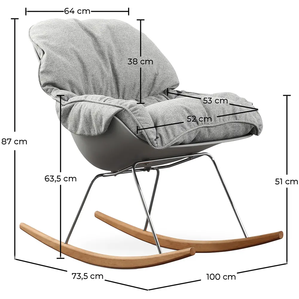 The padded rocking chair takes some serious pressure off the legs and buttocks. It is a velvet style armchair with a comfortable back. This design chair is great for rocking a baby, getting away from the computer screen or getting some relaxation after a day of manual work.