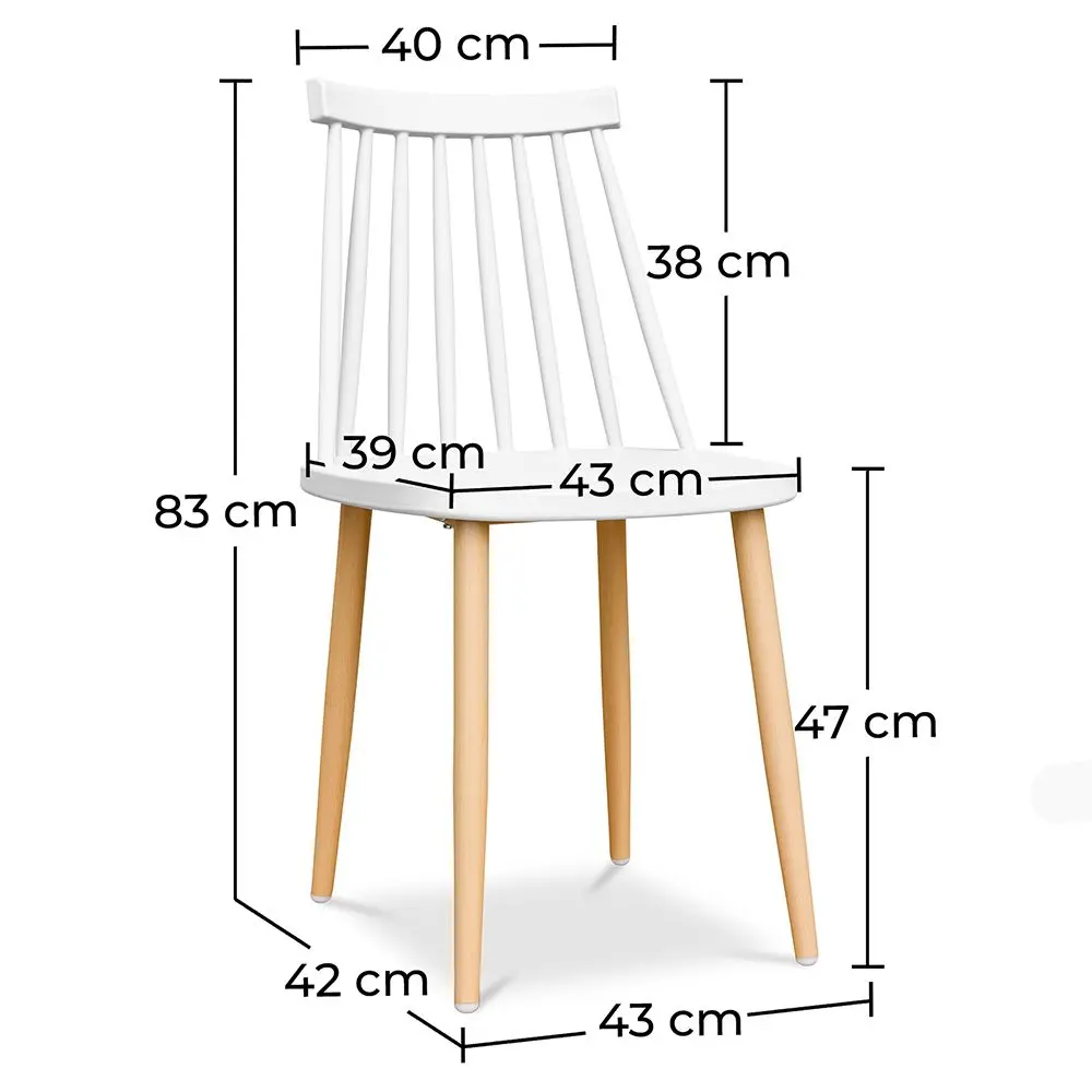 This dining chair inspired by the Nordic style will complete your dining room with great simplicity. A PP chair with a backrest made of bars and metal legs imitating wood.