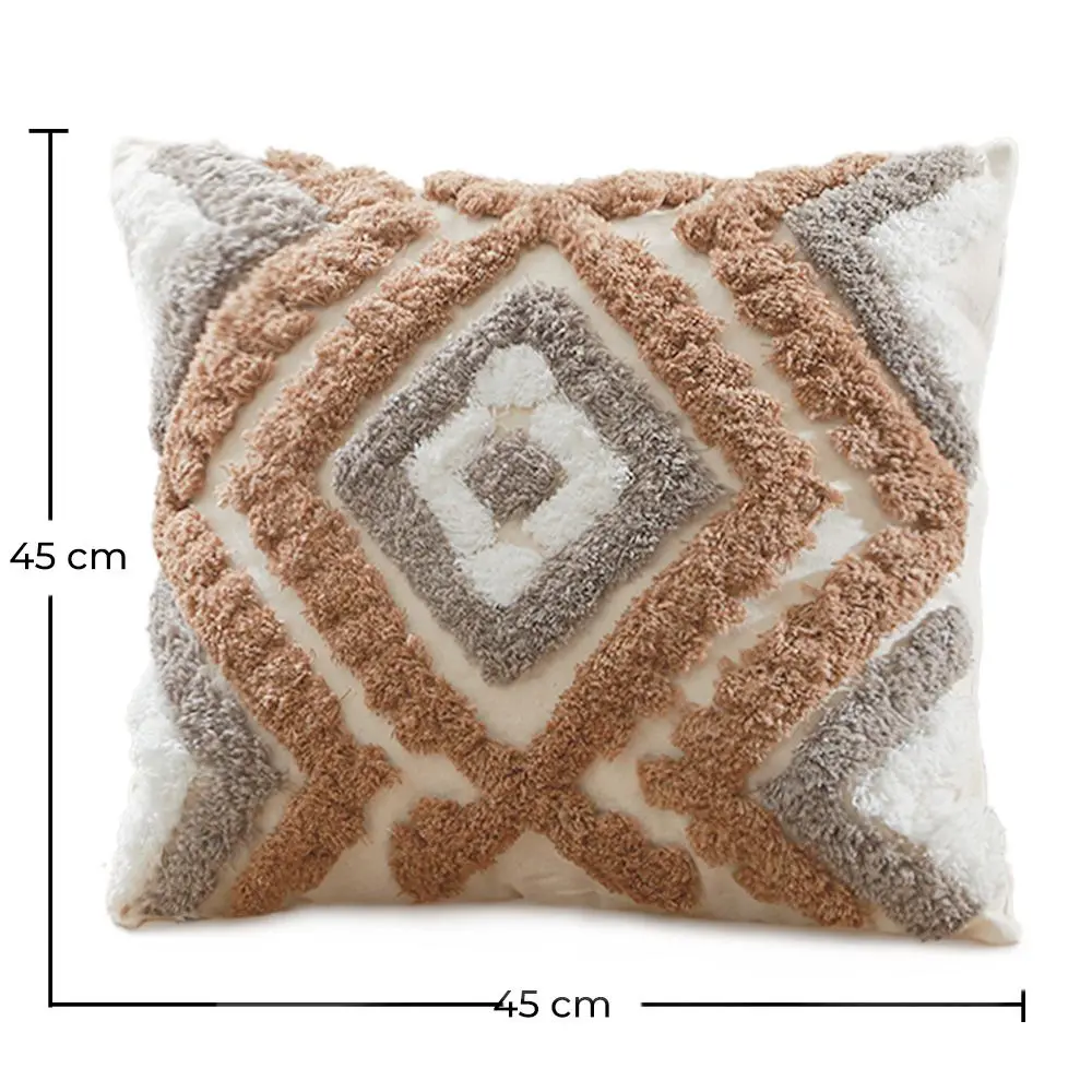 Bring a cosy feel to your living space with Kali, square shape cushion cover. One side has tufted material that, together with its use of patterns, adds to a soothing feel. Perfect choice to discretely decorate your bed, sofa, or armchair, in your living space. Filling included.