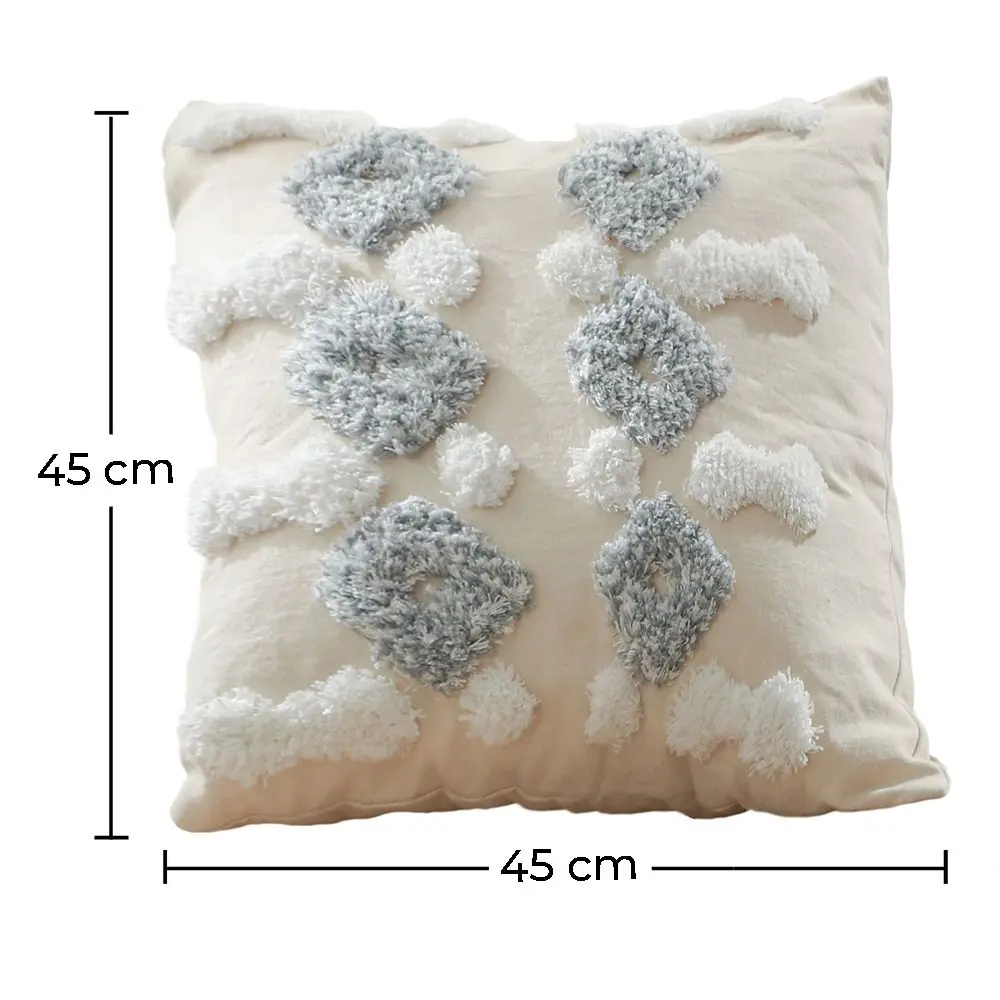 Bring a cosy feel to your living space with Rajal, square shape cushion cover. One side has tufted material that, together with its use of patterns, adds to a soothing feel. Perfect choice to discretely decorate your bed, sofa, or armchair, in your living space. Filling included.