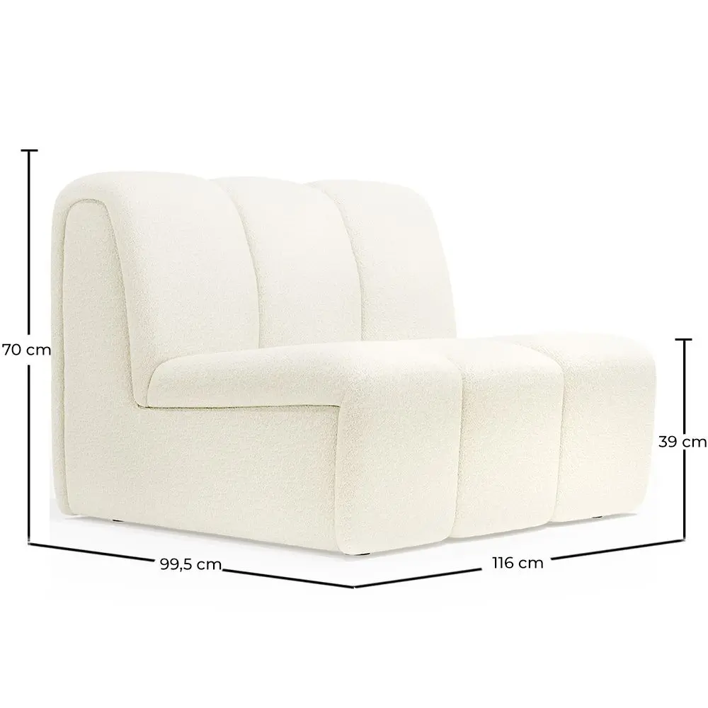 Immerse yourself in contemporary luxury with our straight design sofa module, upholstered in the highest quality bouclé fabric. This module not only features modern and clean lines but also provides exceptional comfort. The bouclé fabric, soft to the touch and visually appealing, adds a touch of distinction to any environment. Designed to meet the demands of hotels and restaurants seeking the best in quality and design, this module can be combined with our curved module to create a custom sofa that suits your preferences and the style of your space. Every detail has been carefully considered to offer a seating experience that redefines comfort and modern elegance.
