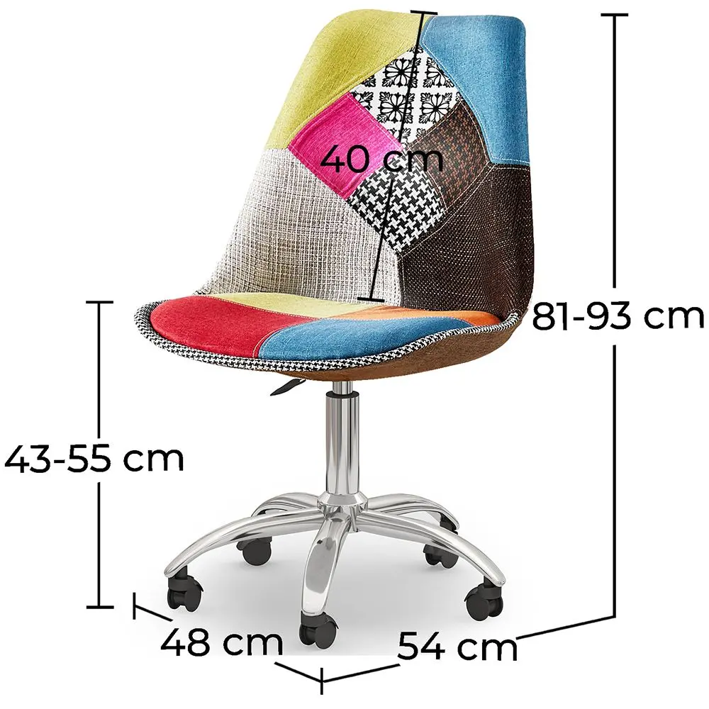 Our study chair with castors is a stylish and contemporary chair, very sturdy and of premium quality. It is a height adjustable office chair, upholstered in patchwork, ideal for home or office use.
