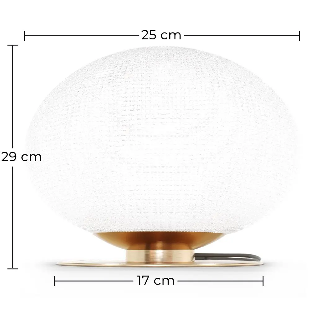 This ball table lamp has brass stand and carries a rounded glass ball shade. Its spherical shape and soft light bring comfort and a cozy atmosphere. Fits perfectly on a bedside table, or a desk.