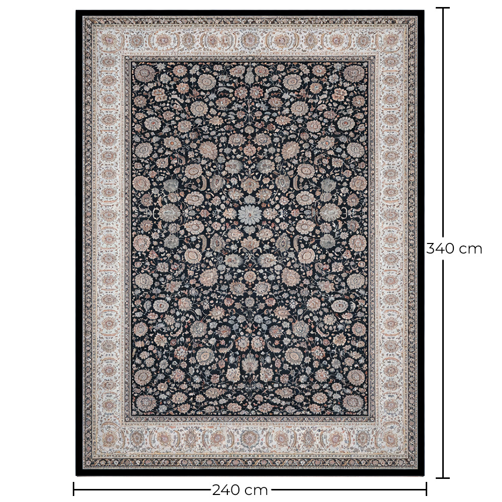 This generously sized polyester and cotton carpet, measuring 340cm x 240cm, is the perfect choice for those looking to combine style and functionality in their home. Polyester is known for its durability and ease of cleaning, ensuring that this carpet maintains its beauty for a long time. Its classic design features an intricate floral pattern that adds a touch of elegance and sophistication to any room. Whether you place it in the living room, bedroom, or hallway, this carpet will add a touch of warmth and comfort to your home, making it a cozy space for the whole family.