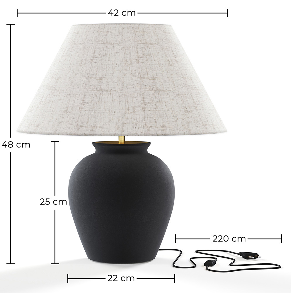 Bring warmth and personality to your spaces with this elegant vintage-design table lamp, ideal for classic, rustic, or bohemian interiors. Its ceramic base with an aged finish offers a handcrafted texture and timeless aesthetics that stand out in any setting.