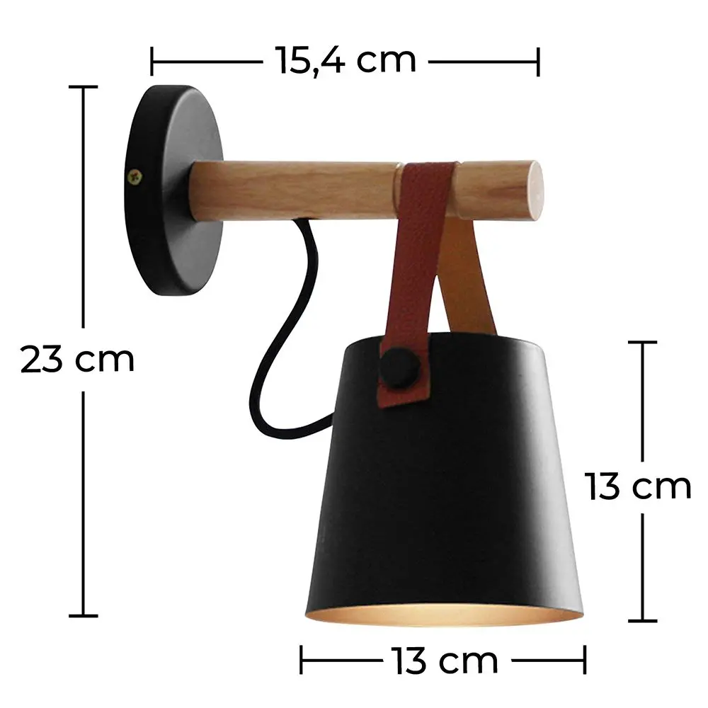 This modern wall lamp with vintage touches perfectly combines the metal with the wood and the brown leather.