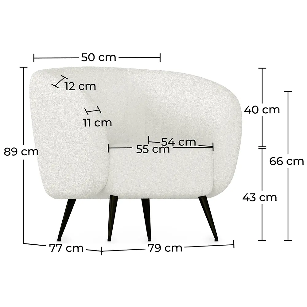 If you are looking for a stylish and comfortable armchair, this might be the one. This armchair's seat stands on slim metal legs and is padded with white teddy fleece. The backrest is rounded and equally comfortable. Bring style, simplicity and comfort to your room.
