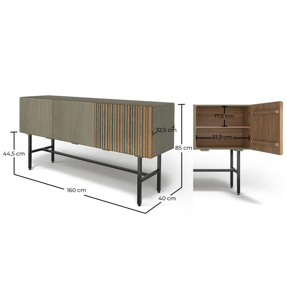 Meet Zesnar, our stone console in industrial and modern style. A mixture of frame materials gives this piece an earthy, industrial tone. The frame is made out of jamun, stone, veneer and metal, and the whole structure is standing on metal legs. It has 3 doors. What a delicate piece for your storage.