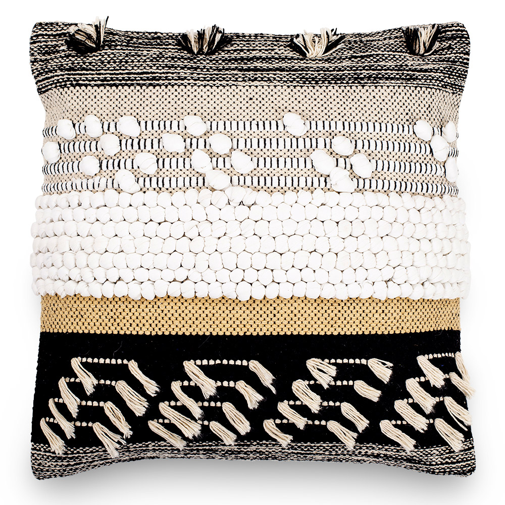 Square Cushion in Boho Bali Style, Cotton & Wool cover + filling - Minerva